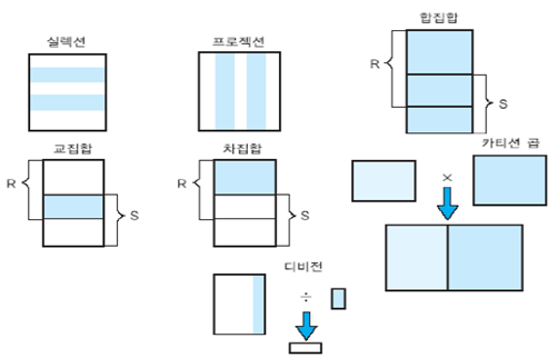 [일반집합연산] 합집합, 교집합, 차집합(-), 카티션 프로덕트(X)