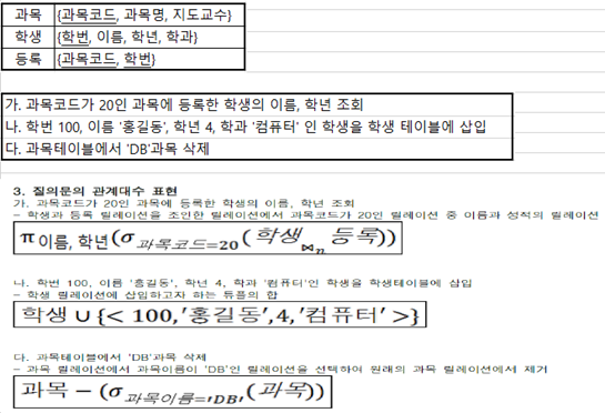 – 관계 대수에서는 연산들을 순차적으로 사용하므로 절차적인 성질을 가짐