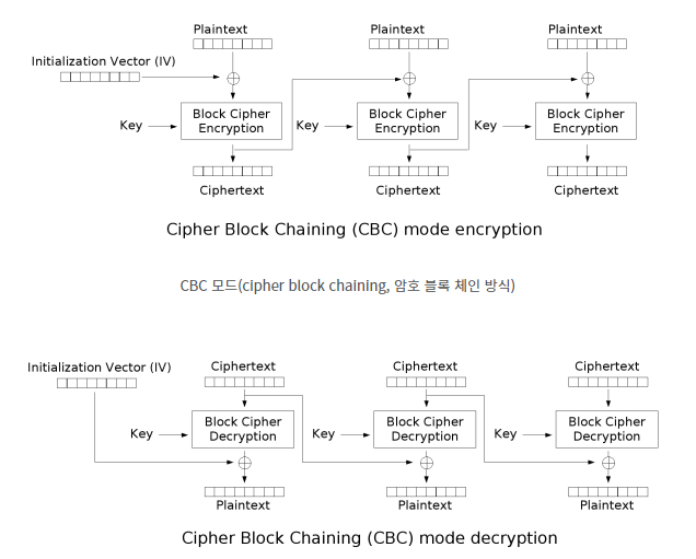 [CBC의 암호화 및 복호화 과정]