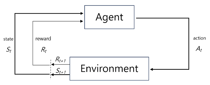 - 에이전트는 환경의 상태(State)를 관찰하고, 특정 행동(Action)을 선택하며, 그 결과로 보상을 받으며, 이 과정을 반복하면서 최적의 정책(Optimal Policy)을 학습